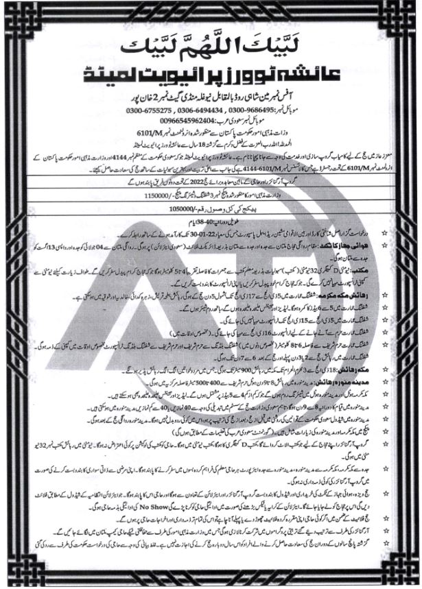 AYESHA TOURS (PVT) LTD ALL HAJJ DETAILS